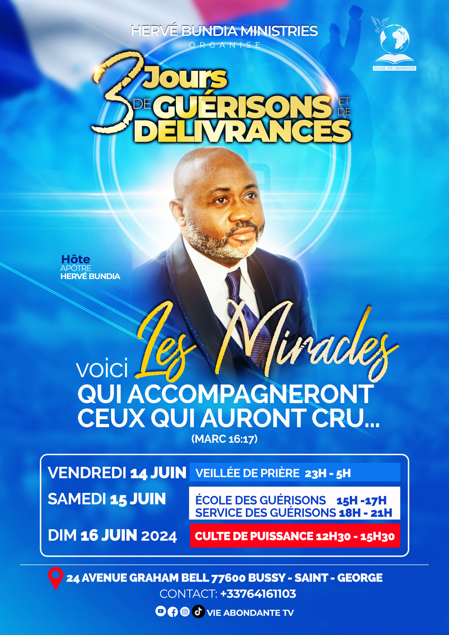 Bienvenue sur Vie Abondante Tv, la plateforme chrétienne qui vous offre un accès illimité de nos émissions. Portée par l'Apôtre Hervé BUNDIA, Vie Abondante TV est dédiée à la prédication de la Parole de foi, l'édification et l'exhoration du corps de Christ
